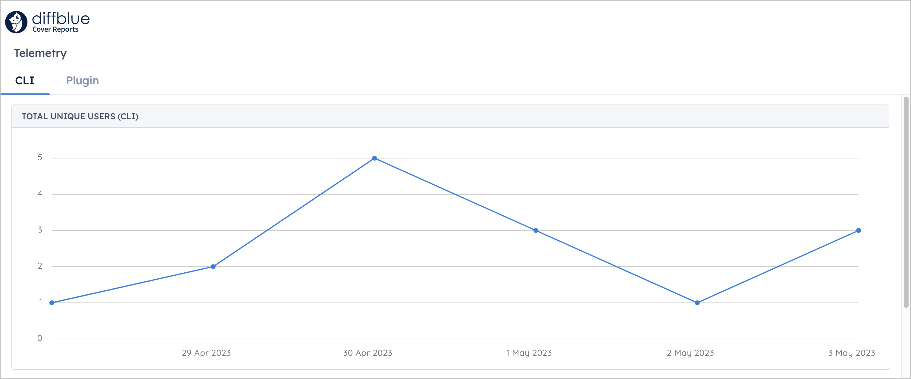 http://cover-reports.mycompany.com:8080/ui/telemetry - 3.From this view, you can select either the CLI tab for CLI events, or the Plugin tab for plugin events: