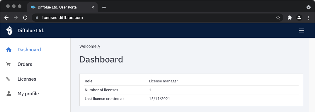 Once logged in you will be presented with a dashboard which currently lists how many licenses you are managing.