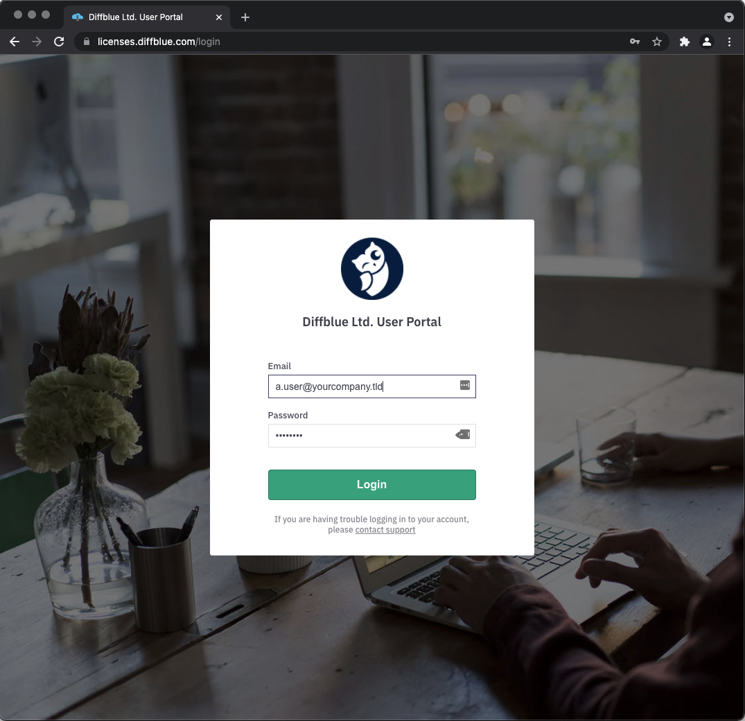 Log in to https://licenses.diffblue.com using the username and password provided in your Diffblue welcome email.