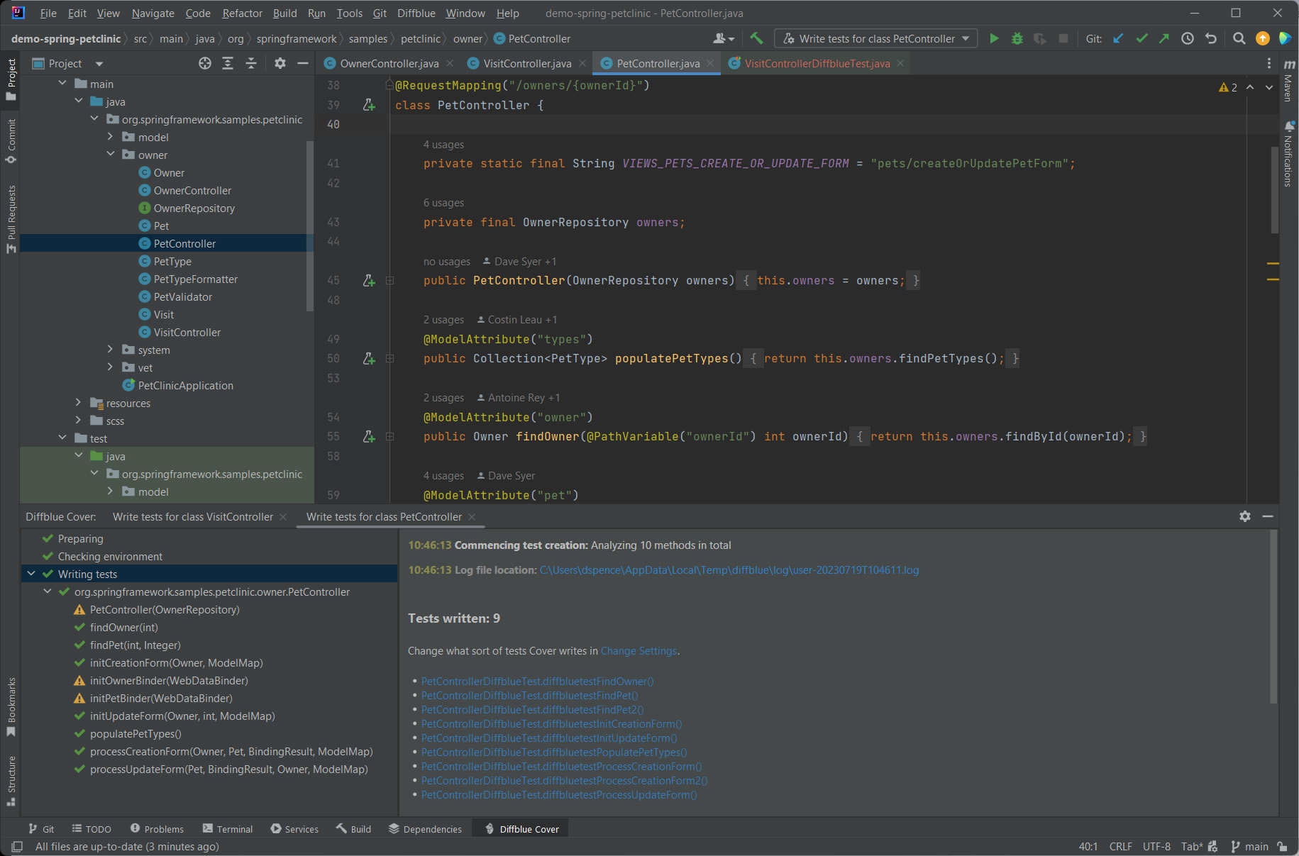 - Cover Plugin for IntelliJ writes tests for your methods and classes directly within the IDE on the developer desktop.