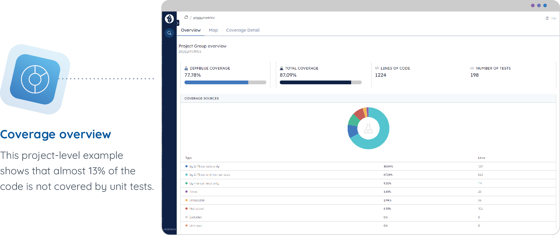 - Increase coverage. Get to 80% coverage in half the time! Diffblue Cover creates unit tests in bulk to help your team quickly assess the quality of your test suite.