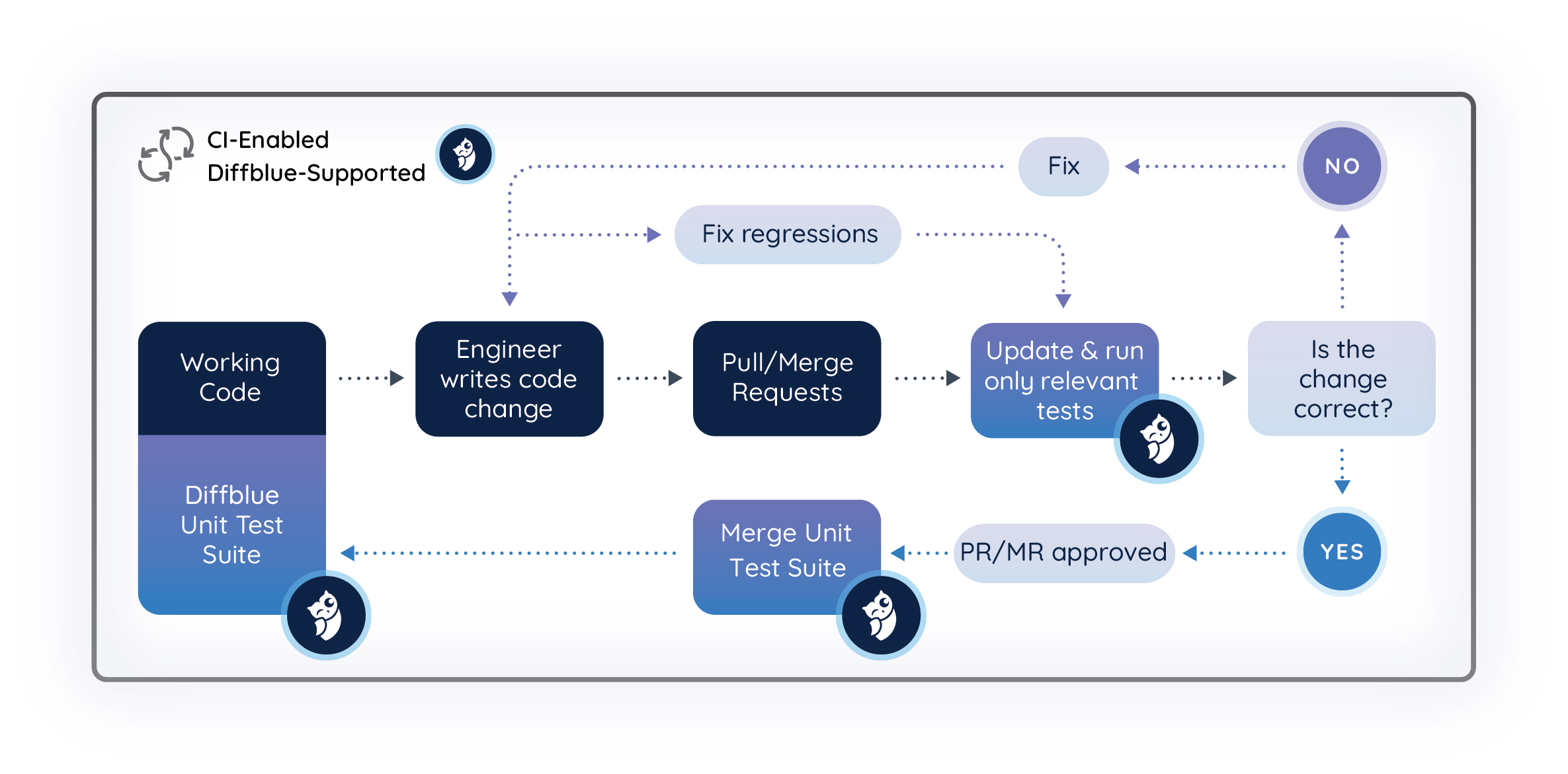 - Diffblue Cover is intended to be used for unit regression testing. That means it creates tests that reflect the current behavior of your code. Later, when you make changes to the code, these tests may fail and therefore highlight regressions. Since tests are written for your entire application at the most granular level, this means the smallest of regressions are caught which can avoid the dangers of incubated regressions that can manifest and build over time.
