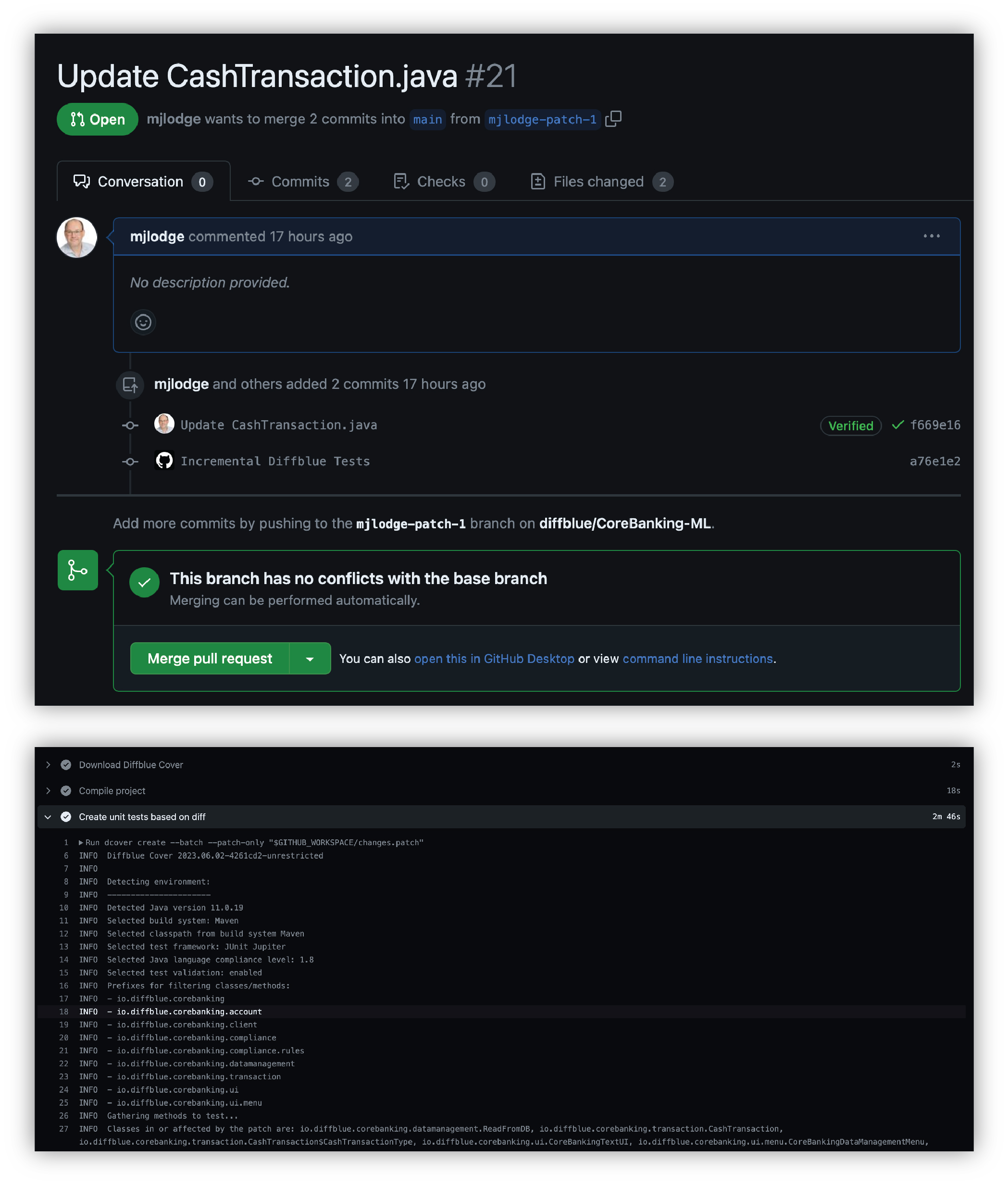 Cover is fully autonomous. It can create an entire unit test suite for your whole application in a single execution, run locally within your environment, no cloud service required, no developer overhead. Cover also maintains this unit test suite as your software evolves, even on applications with millions of lines of code. Thanks to a deep understanding of how your code works, Diffblue Cover knows what tests need to be added and updated for every code change. It implements the necessary updates automatically, ensuring coverage doesn’t dip while your teams move faster.